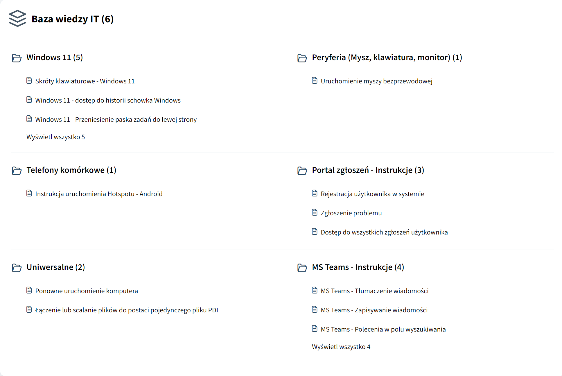 Wszyscy użytkownicy zalogowani w portalu pomocy posiadają dostęp do bazy wiedzy tworzonej przez naszych specjalistów.