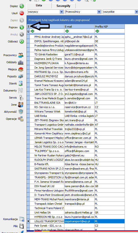 Na 2 od lewej liście rozwijanej wybieramy „przewoźnicy”