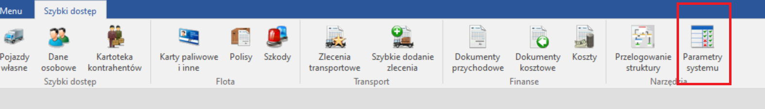 2. Otwieramy zakładkę paramtery systemu